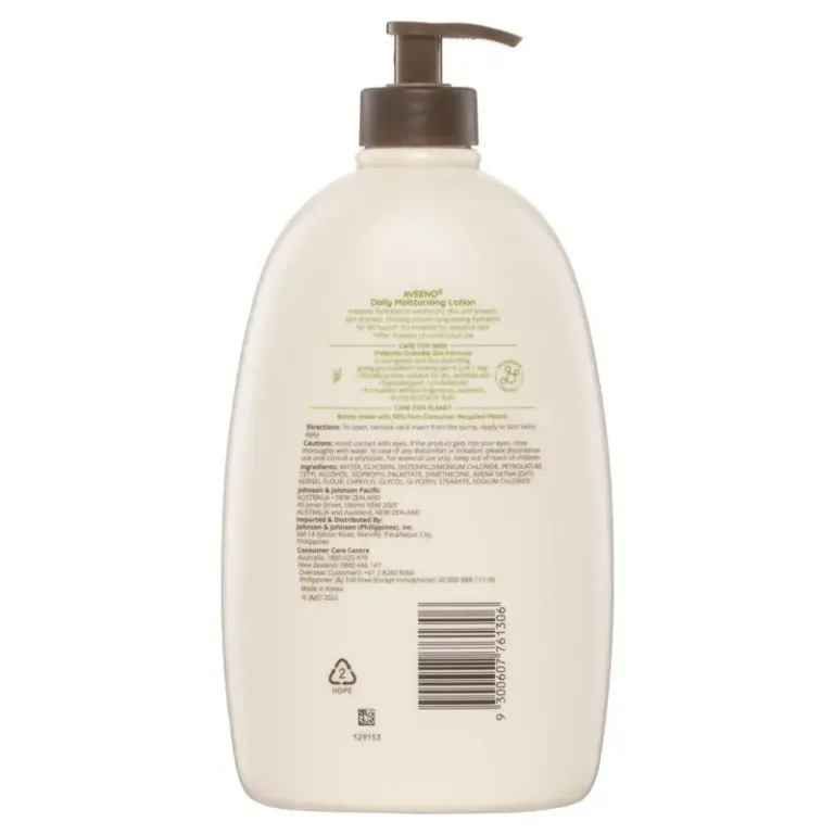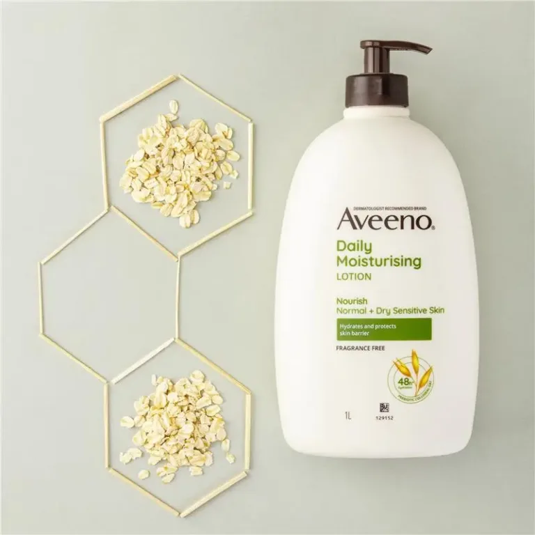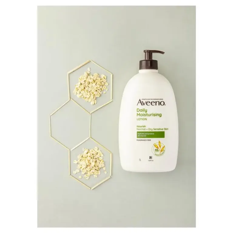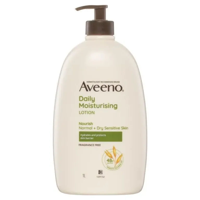 Aveeno Daily Moisturising Lotion nourishes normal and dry, sensitive skin while hydrating and protecting the skin barrier. Formulated with Prebiotic Colloidal Oat, this fragrance-free lotion is suitable for sensitive skin.