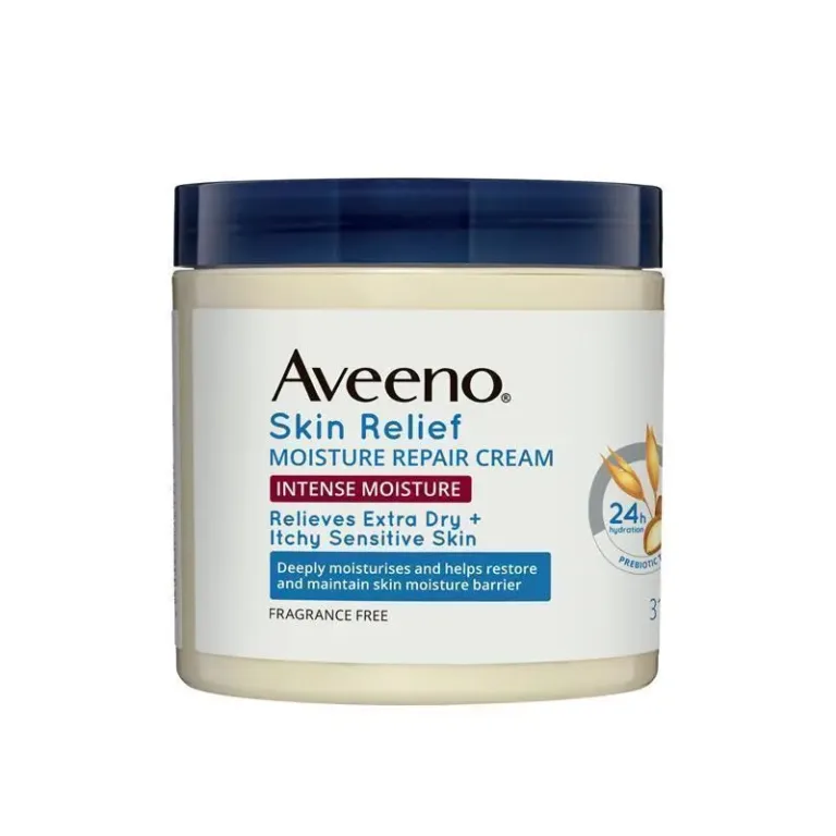 AVEENO® Skin Relief Repair Cream is an intense moisturiser designed for very dry skin. It helps restore and maintain the skin’s moisture barrier while providing long-lasting hydration.