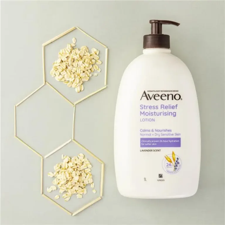 Aveeno Stress Relief Moisturising Lotion calms, nourishes, and hydrates normal to dry, sensitive skin. Infused with a soothing lavender scent and formulated with Prebiotic Colloidal Oat, this non-greasy, fast-absorbing lotion is clinically proven to provide 24-hour hydration.