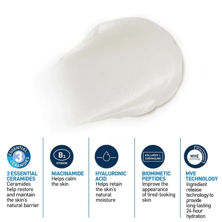 CeraVe Skin Renewing Night Cream is a hydrating night cream formulated with peptides and ceramides to support skin renewal while you sleep. This gentle, fragrance-free cream helps restore the skin’s natural barrier, replenish moisture, and promote healthier-looking skin. Designed for nightly use, it is suitable for normal to dry skin types and developed with dermatologists.