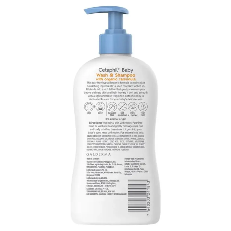 Cetaphil Baby Gentle Wash & Shampoo with Organic Calendula is specially formulated to be tear-free, hypoallergenic, and gentle for your baby’s delicate skin and hair. The soft lather rinses easily, leaving skin and hair feeling clean, smooth, and refreshed without dryness.