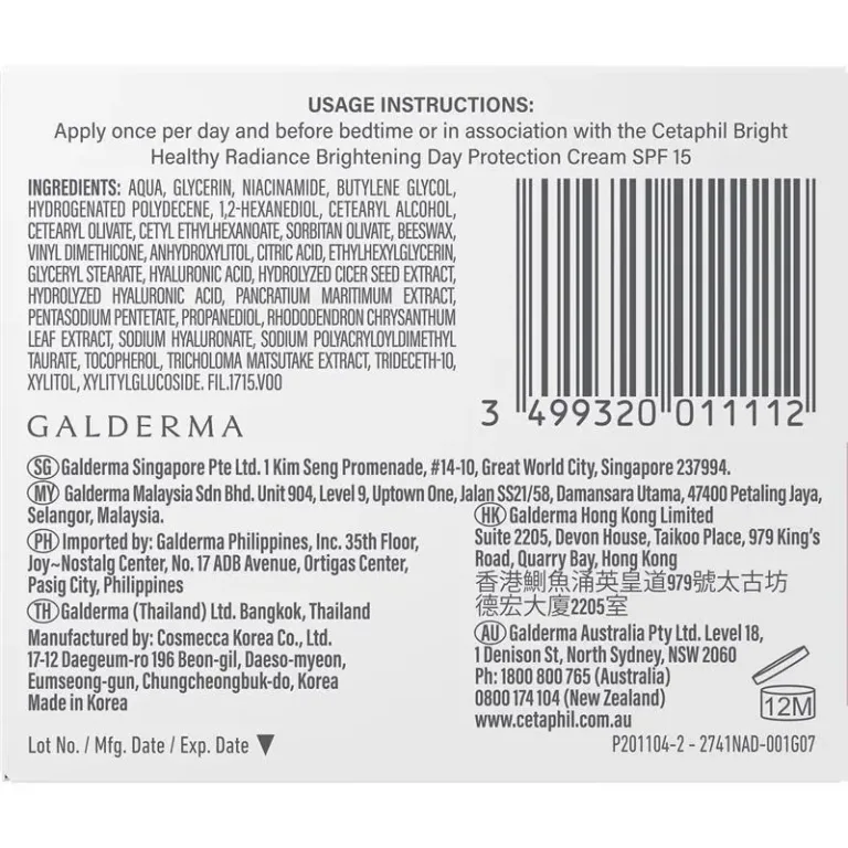 Apply once daily in the evening before bedtime, or use in combination with Cetaphil Bright Healthy Radiance Brightening Day Protection Cream SPF 15 for best results.