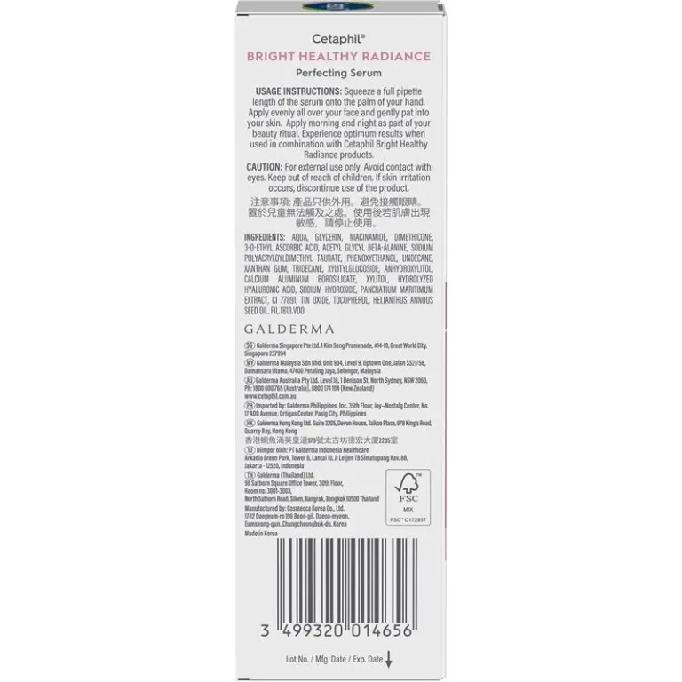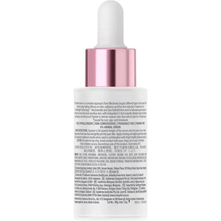 Dispense a full pipette length of serum onto your palm. Apply evenly across the face and gently pat into the skin. Use morning and night as part of your skincare routine for best results. For optimum benefits, pair with other Cetaphil Bright Healthy Radiance products.