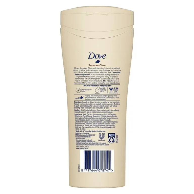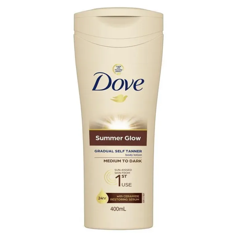 Dove Summer Glow Gradual Self-Tan Body Lotion Medium to Dark (400ml) is specially designed to enhance medium to dark skin tones with a radiant, natural-looking tan. Enriched with DeepCare Complex – a blend of skin’s natural nutrients and essential oils – it nourishes deeply* while gradually building a beautiful sun-kissed glow.