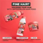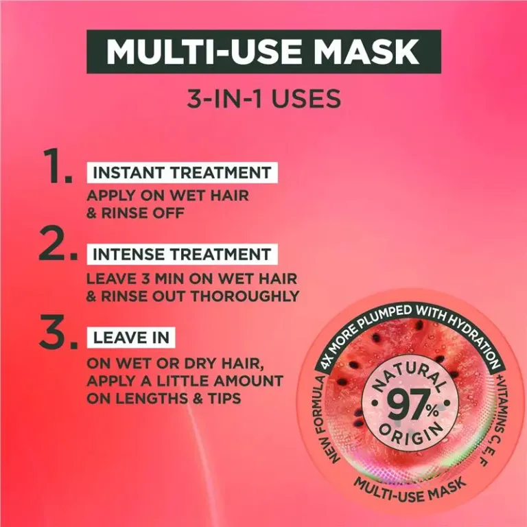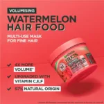 Discover Garnier Fructis Watermelon Hair Food Multi-Use Mask, specially designed to plump fine hair. In just 1 use, hair appears 4X more plumped.*