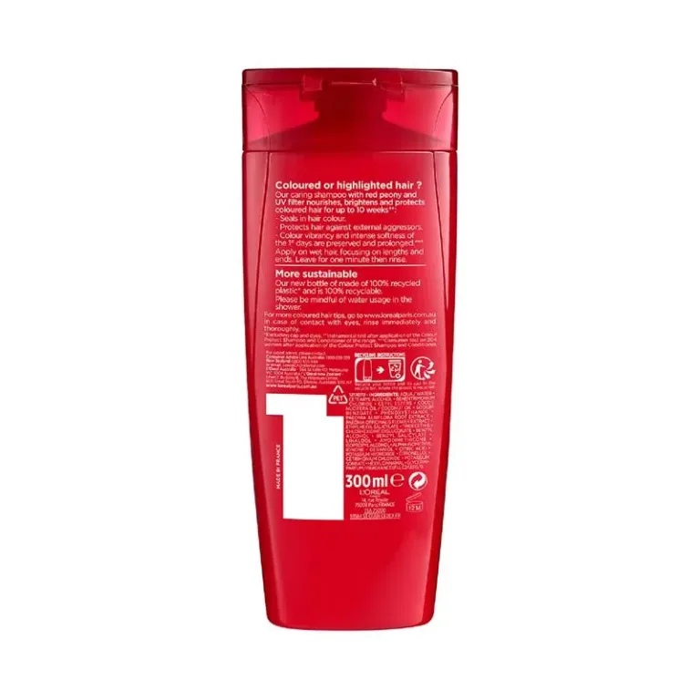 L’Oréal Paris Elvive Colour Protect Shampoo is specially formulated to seal colour inside the hair fibre, protect against UV rays, and deeply nourish to prolong colour, radiance, and shine. Enriched with red peony extract and UV filters, this shampoo helps maintain colour vibrancy and softness for up to 10 weeks.* It protects hair from external aggressors, leaving coloured hair luminous, soft, and healthy-looking.