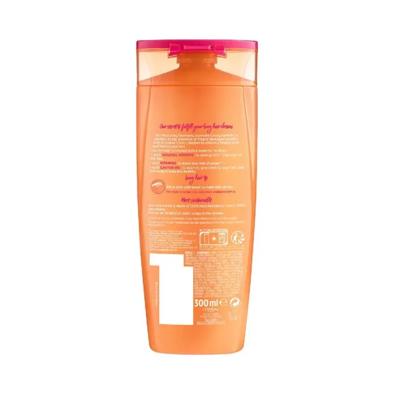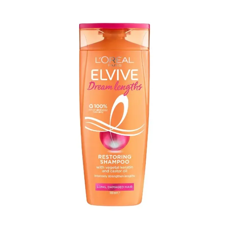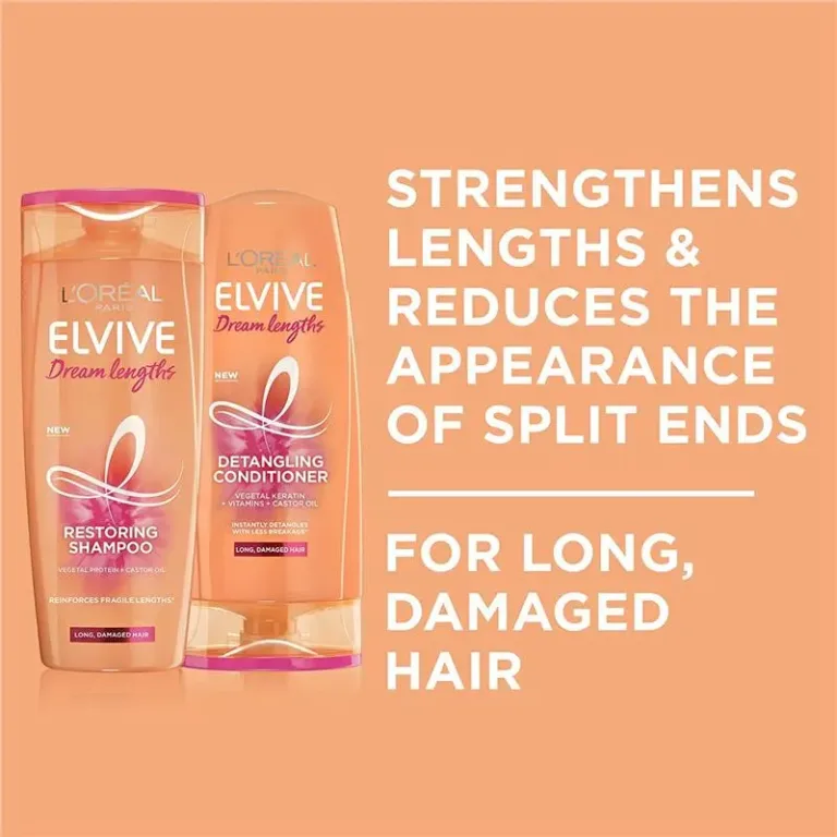 L’Oréal Paris Elvive Dream Lengths Restoring Shampoo is designed to strengthen hair lengths and seal split ends, helping you achieve healthier, longer hair. Its creamy, caring formula actively repairs hair and makes it two times stronger. Ideal for long, damaged hair, it helps protect against breakage and split ends while nourishing from root to tip.