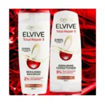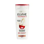 L’Oréal Paris Elvive Total Repair 5 Shampoo is enriched with 2% Pro-Keratin and Ceramides to target and repair 5 common hair concerns: strawlike texture, brittleness, dehydration, stiffness, and split ends. With regular use, it helps restore hair strength, vitality, softness, and shine from root to tip.