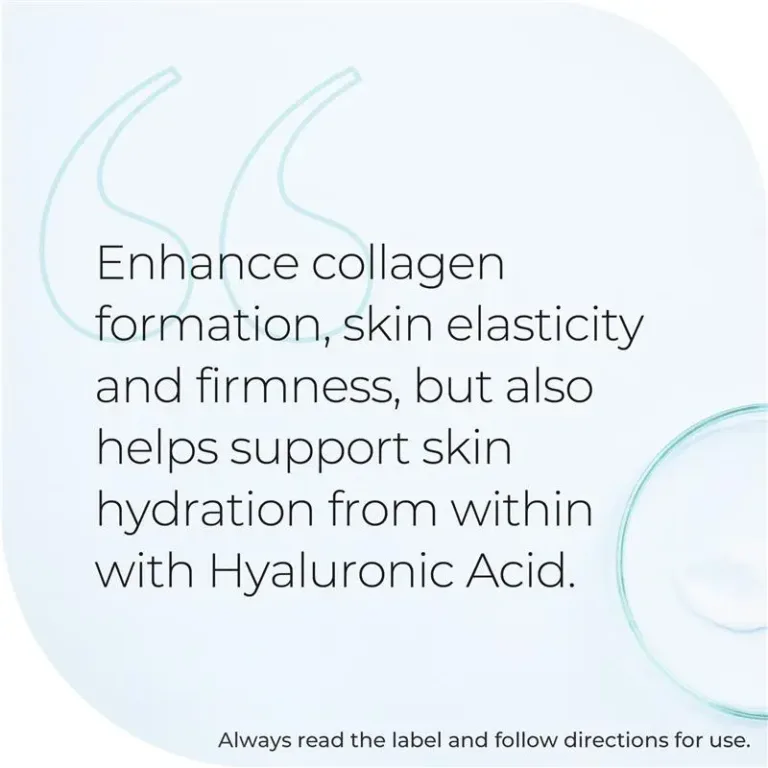 This powerful combination of Hydrolysed Collagen and Hyaluronic Acid (Sodium Hyaluronate) works together with a blend of essential beauty micronutrients to deliver complementary skin benefits:
