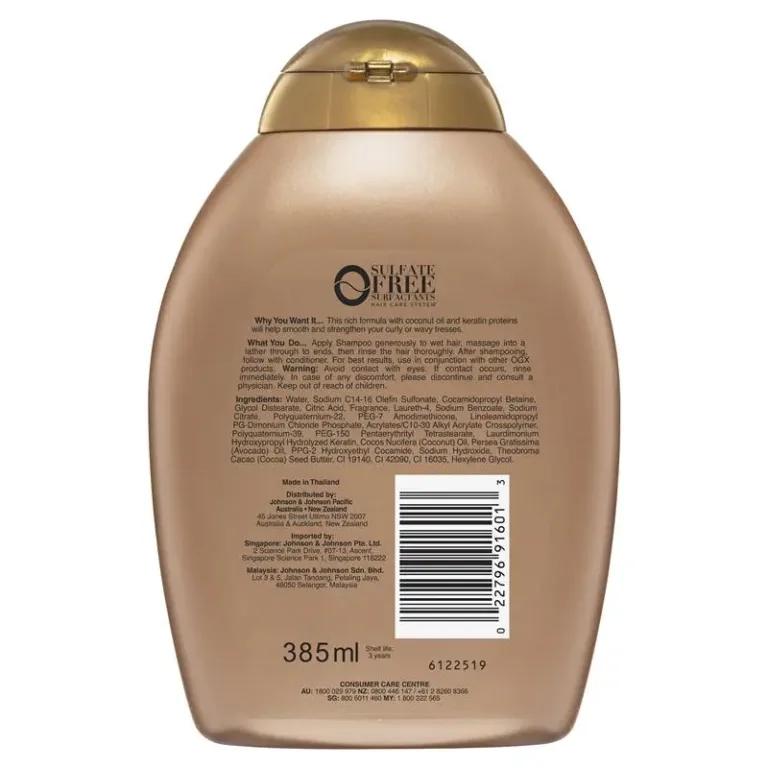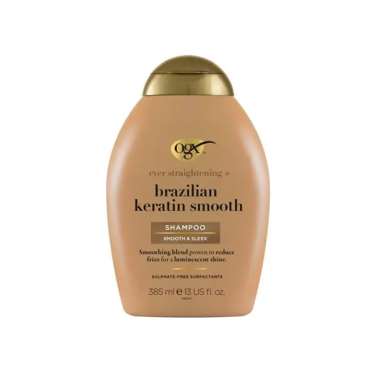 OGX Brazilian Keratin Therapy Shampoo is a rich, sulfate-free formula designed to strengthen, smooth, and soften the hair. Infused with Brazilian coconut oil, keratin proteins, avocado oil, and cocoa butter, this nourishing blend helps to smooth the hair cuticle, improve strength, and restore shine.
